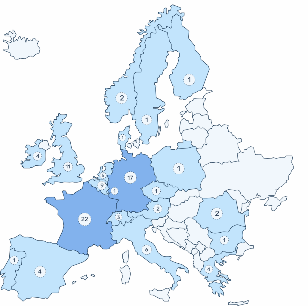 AustriaBelgiumBulgariaCzech RepublicDenmarkEUFinlandFranceGermanyGreeceInternationalIrelandItalyLuxembourgNorwayPolandPortugalRomaniaSpainSwedenSwitzerlandThe NetherlandsUnited Kingdom